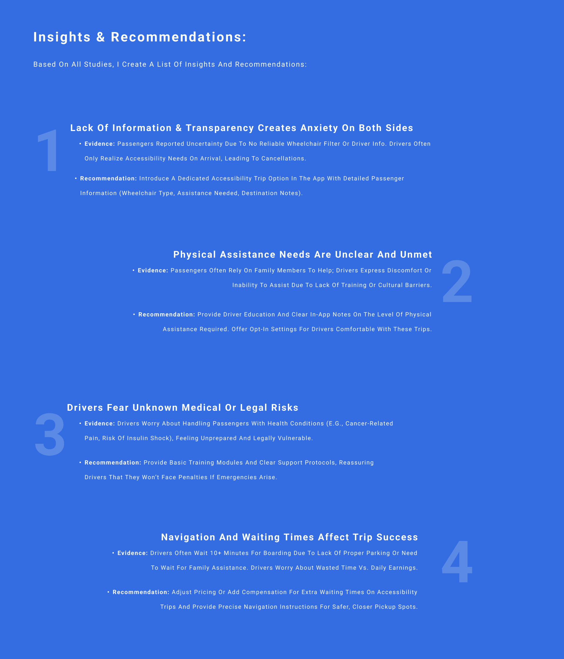 Lack of Ride Details: Drivers often don’t know wheelchair needs in advance, causing awkward last-minute cancellations.